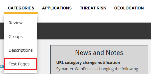 2) ページ上部の [CATEGORIES] メニューから [Test Pages] を選択します。