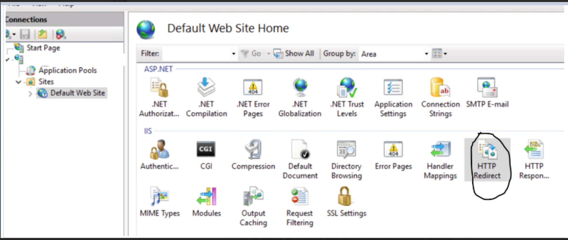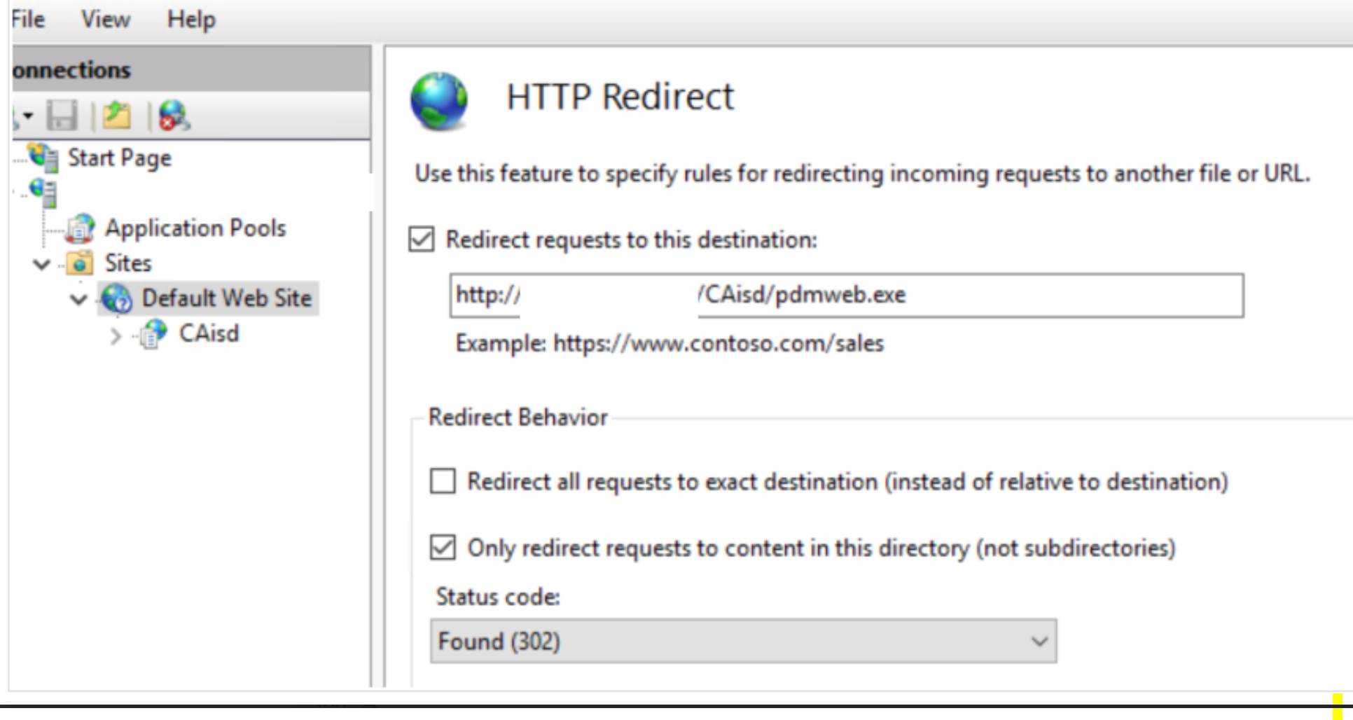 Redirection can be performed via IIS.
