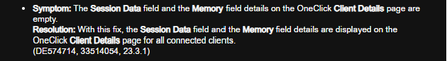 Since upgrading from 21.2.12 to 22.2.10, the OC Client Details - Session Data and Memory are empty.