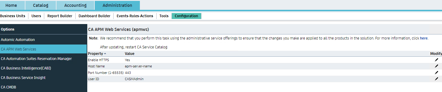 Besides changing the Service Catalog configuration (Administration-->Configuration-->CA APM Web Service)