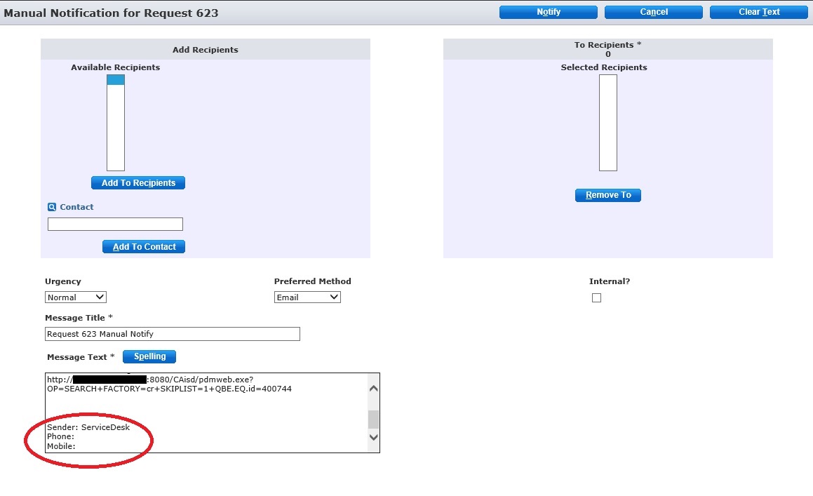 Default Manual Notify message template for request/incident/problem