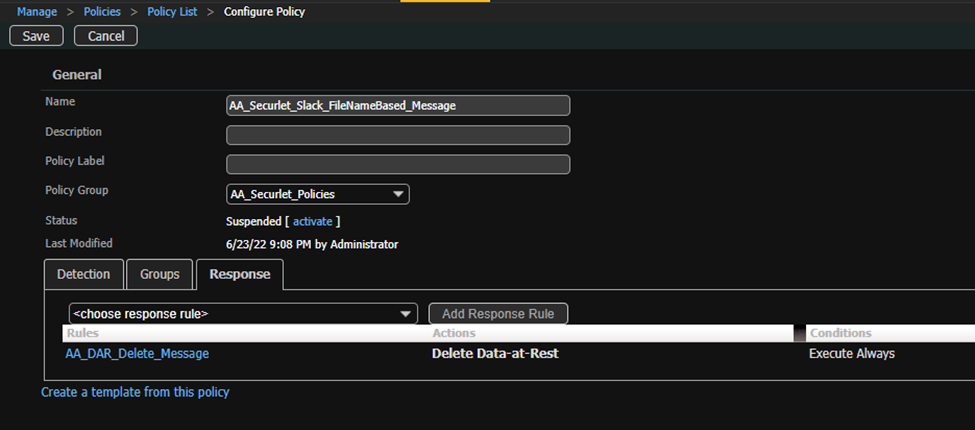 Create A policy for Slack Messages