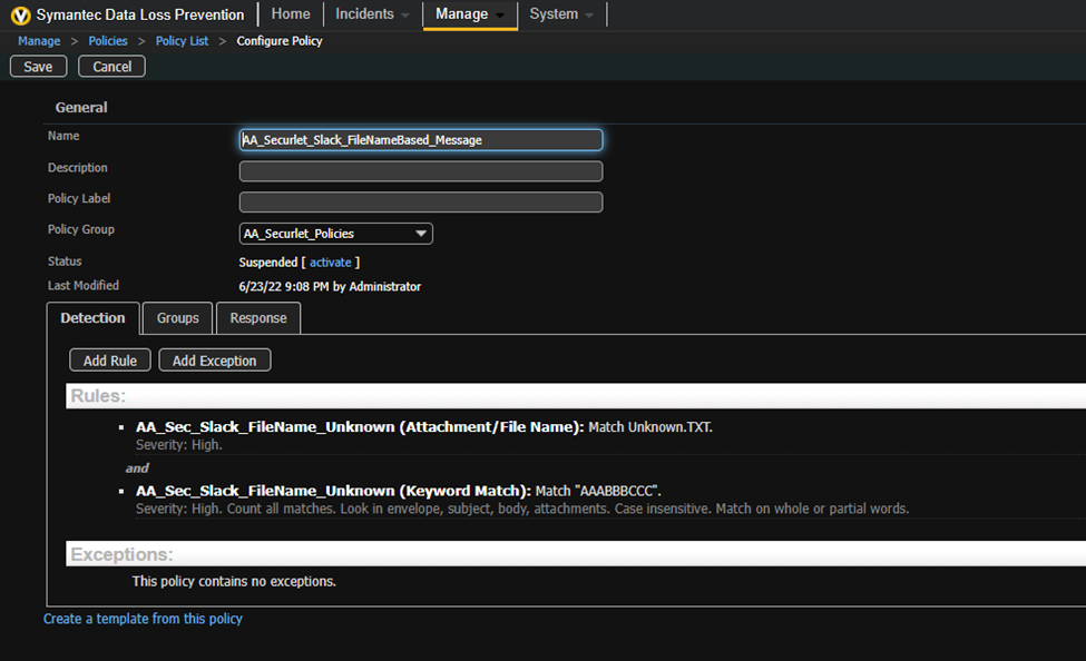 Messages and Files objects are both considered as files in Slack , in some environments, the policies and requirements around each one of them is different. This article goes through a suggestion on how to separate the policies of each object in DLP enforce.