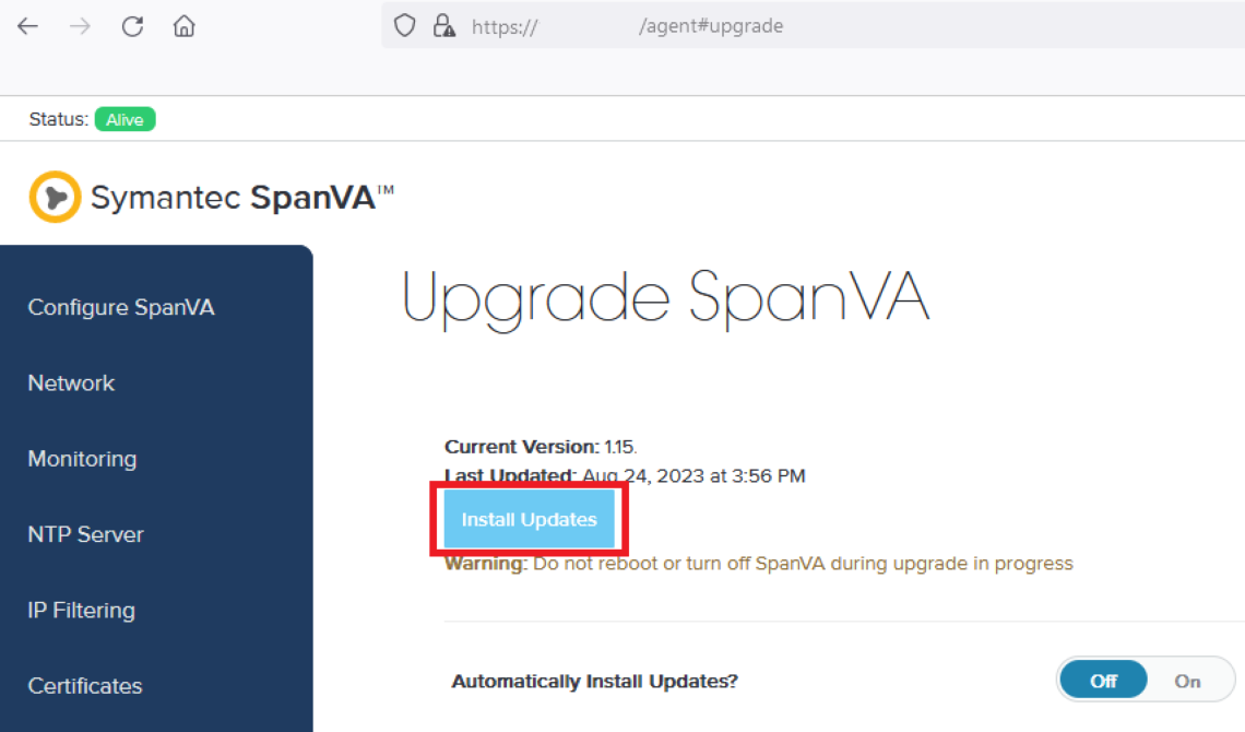Verify SpanVA health by running diagnostics from the diagnostic page and verify there is no errors.