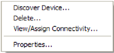 Once a device has been added to the database, all properties for that device can be discovered. By selecting the device in the tree view and right clicking, the following menu appears: