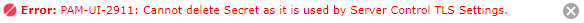 PAM-UI-2911: Cannot delete Secret as it is used by Server Control TLS Settings.