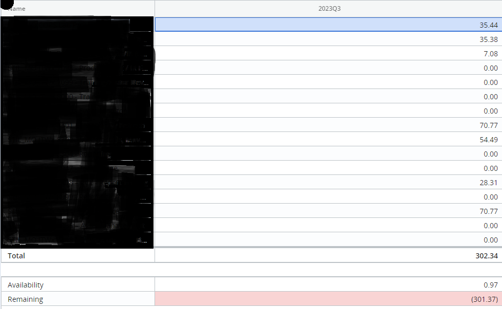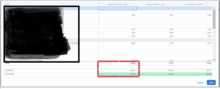 Once updated review the Total at the bottom of the screen and the total allocation of each investment vs total is not matching, similar behavior can be seen in the Resource Availability