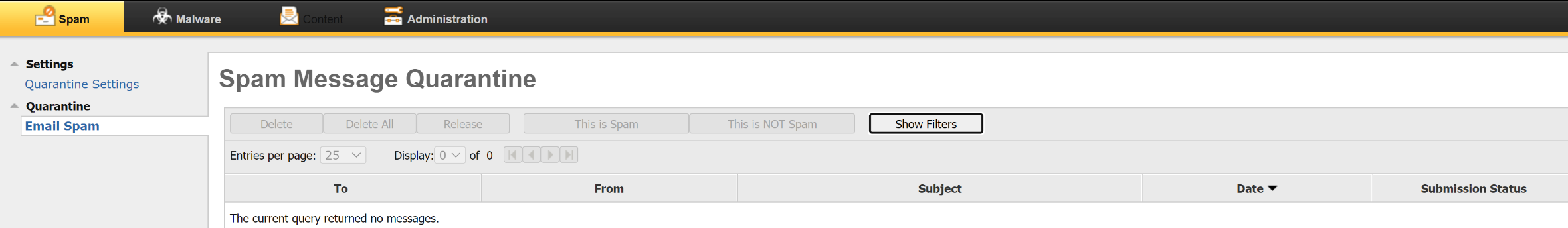 When having an administrator with limited administration rights to Manage Quarantine with "View" rights, Content Incident Folders: Informational Incidents with "Modify", Quarantine Incidents with "Modify" & None for all others.