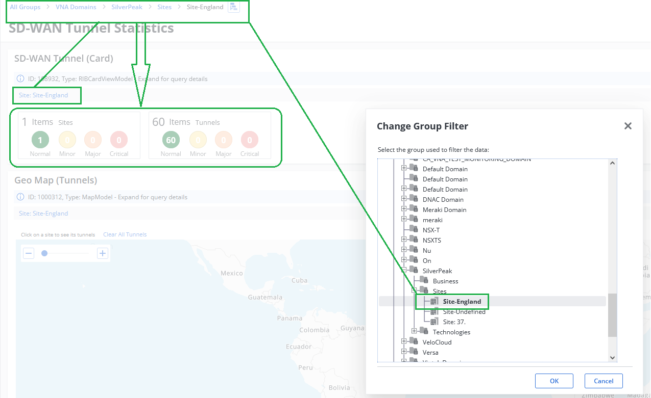 The card view should should show child site groups under the selected group. And the tunnels should show count of all tunnels in selected group and child groups.