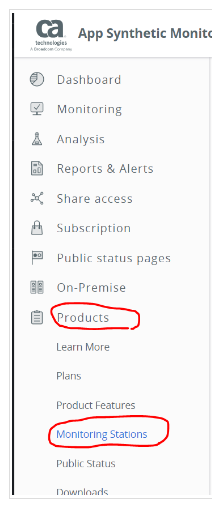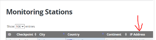 Public Stations IPs are listed under Products -> Monitoring Stations.