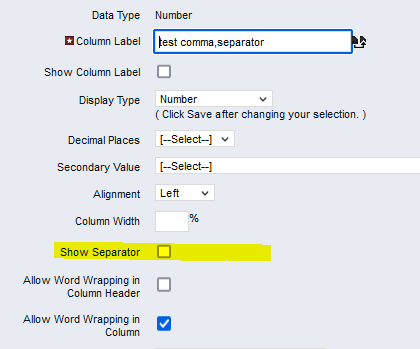In the Classic UI, is it possible to remove the comma/separator for an attribute of type=Number?