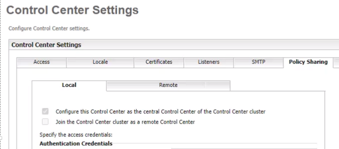 Disabling policy sharing on the main Control Center using the User Interface.