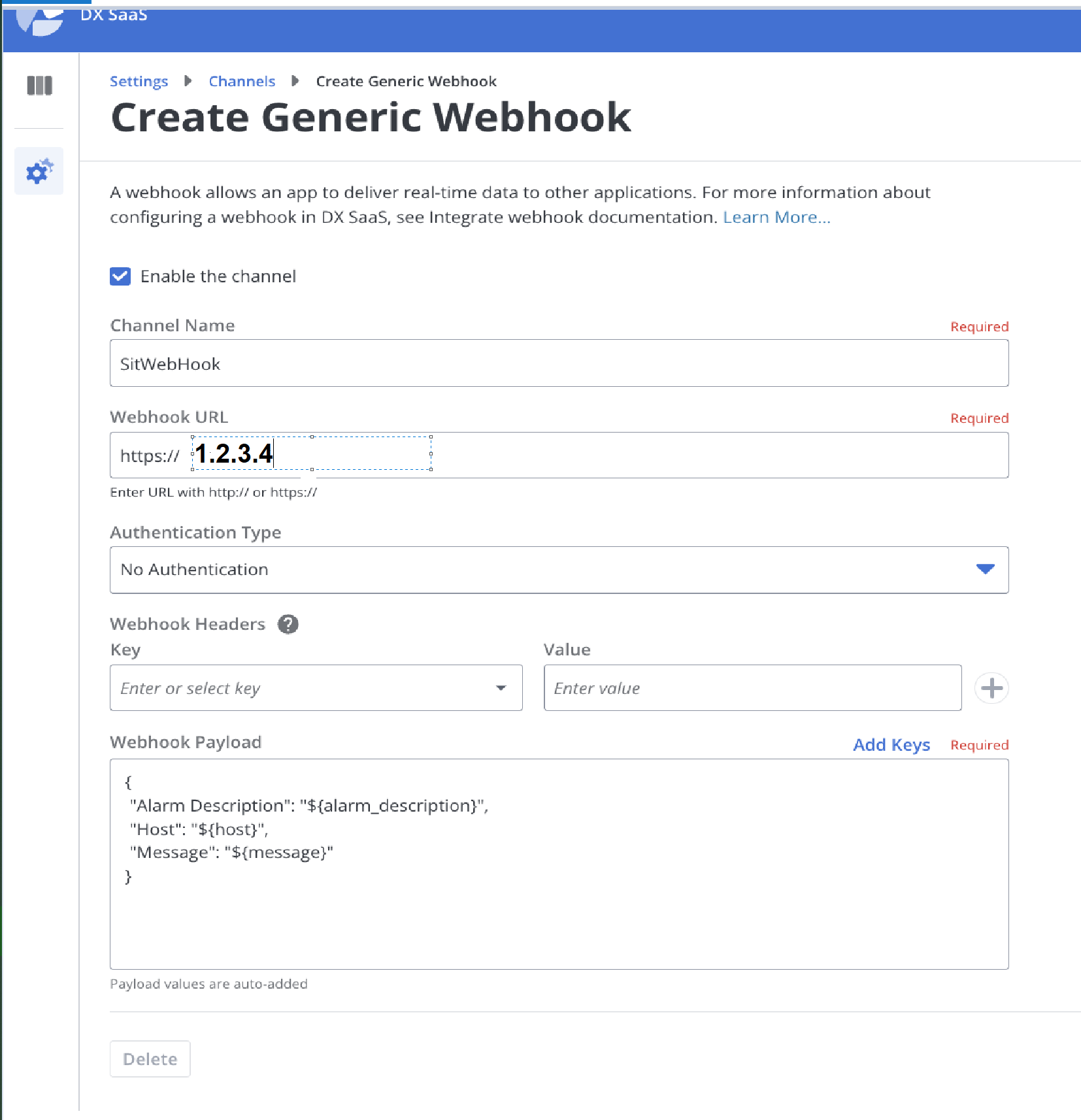 Webhook configuration only supports ports 80 and 443. Customer was using another port.