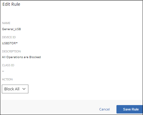 The following screenshot shows an example when the rule General_USB is registered in "Windows - USB Mass Storage Rules". |