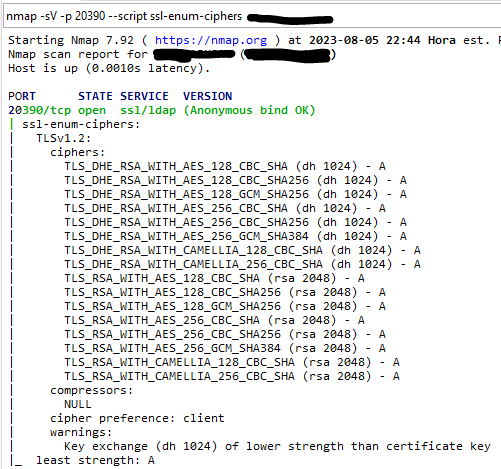 nmap -sV -p 20390 --script ssl-enum-ciphers <IP address>