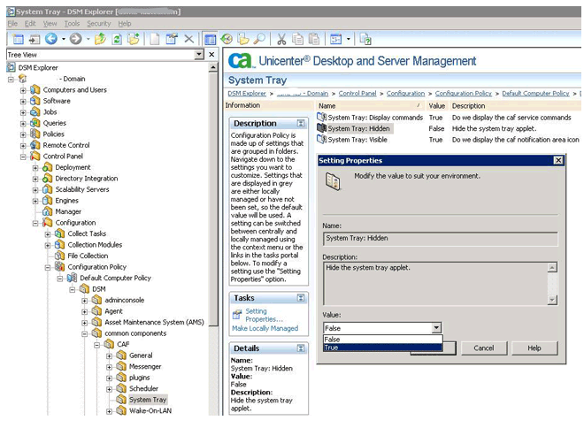 How do you hide the CA Client Automation agent icon on the System Tray so Users will have no control over the Agent Configuration?