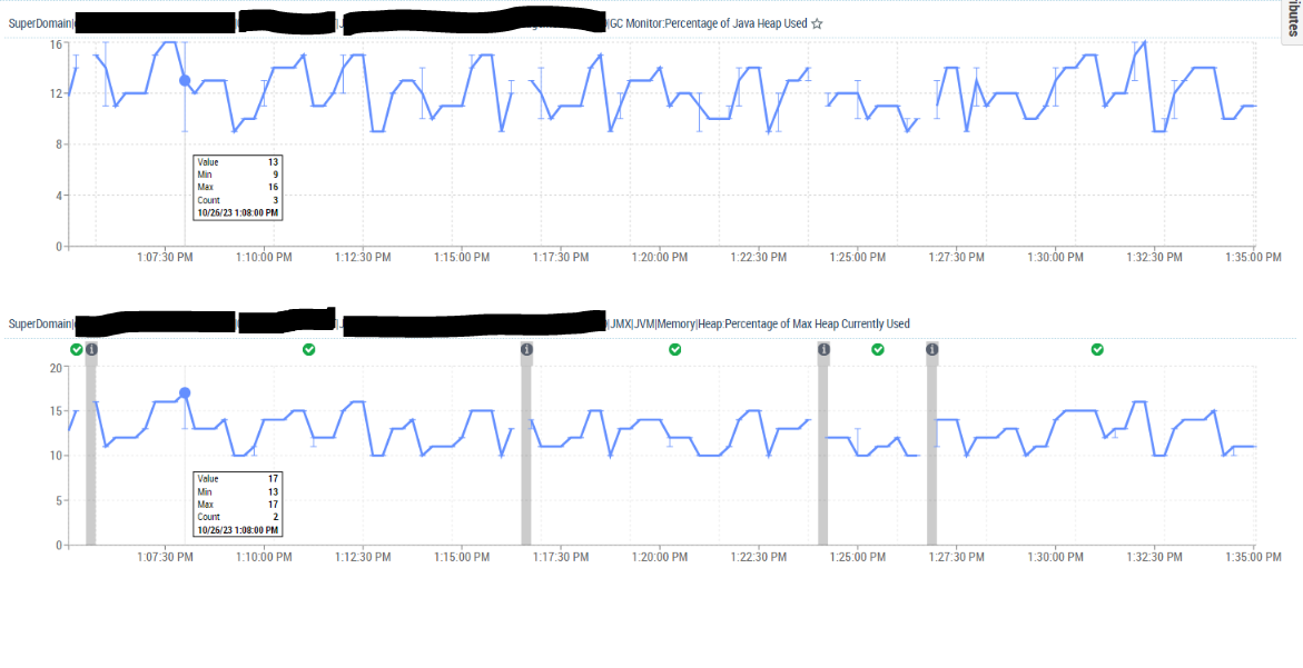 3) given that "GC Monitor:Percentage of Java Heap Used" is very long standing Java agent metric and easier to use in metric groupings as no pipe characters to escape in metric specifier regex, is there ever any advantage to use "JMX|JVM|Memory|Heap:Percentage of Max Heap Currently Used"?