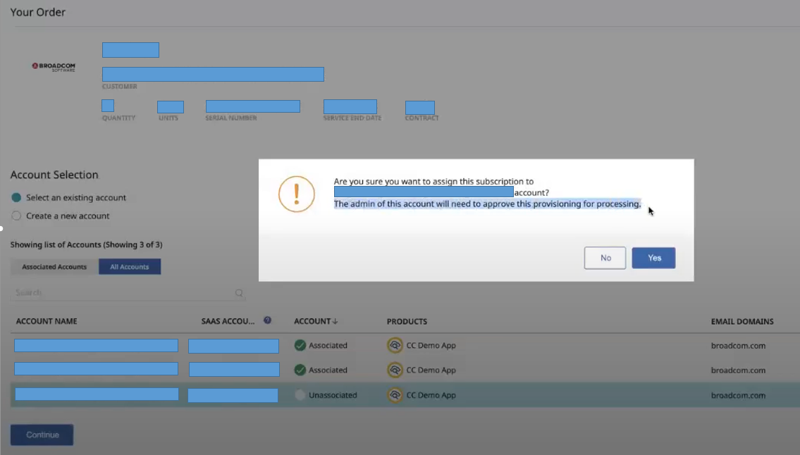 If you are a provisioning contact i.e. technical contact or Admin for the SaaS product, you will receive an email to enroll subscription in the desired account for your order on hold. You can refer to the screenshot for sample.