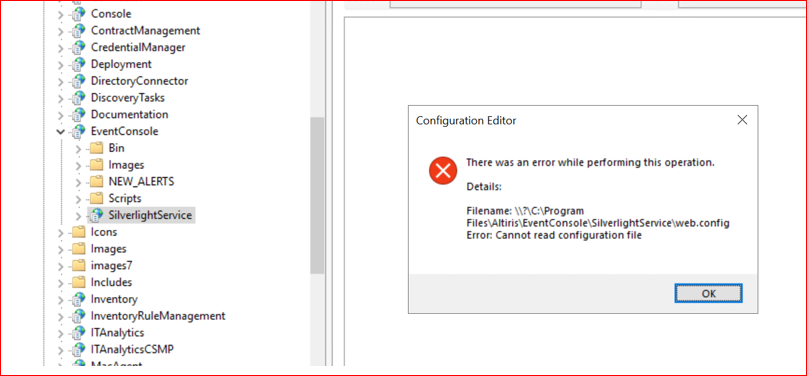 Getting an error while accessing the SilverLightService Virtual directory “Default Website > Altiris > Event Console > SilverLightService > Configuration Editor”