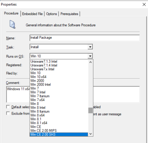During creation of a SD Package, in SD Procedure properties, Windows 11 does not appear in the "Run on OS" listbox.