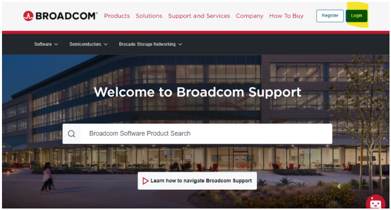 When you go to the support.broadcom.com support portal, you'll see a "Login" option on the top-right corner of the screen. Log in to this portal: