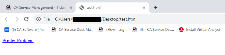 4. Open the created test html file, "test.html" and click the link "Printer Problem".