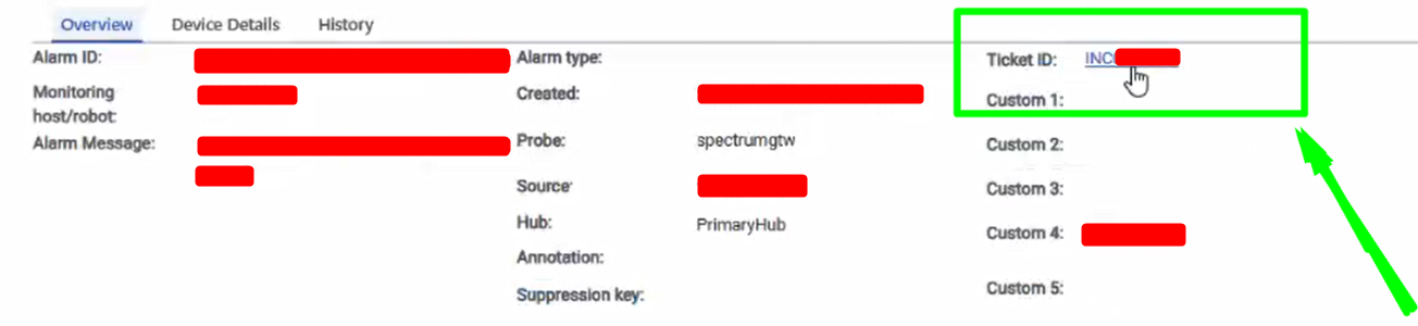 In OC Alarms the ServiceNow ticket information is available as a URL but there is no address behind this URL (about:blank)