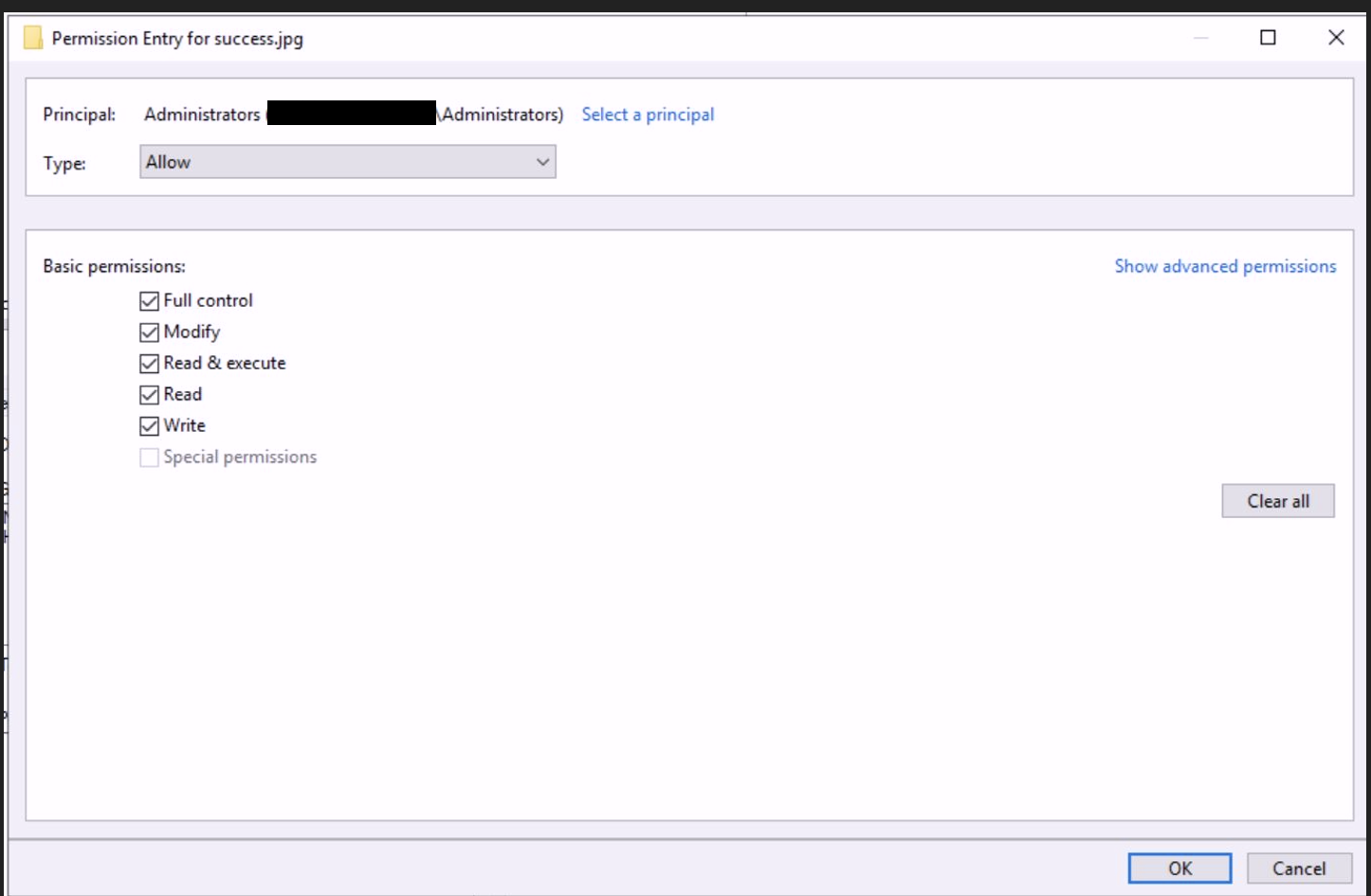 File permissions in Properties -> Security tab for this file were corrupted: