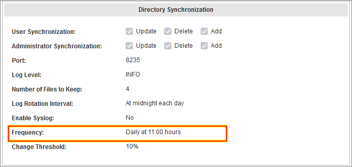 When an LDAP sync service is initially configured, a unique instanceId is assigned to that particular VIP Enterprise Gateway server by the VIP Cloud (and to each VIP Enterprise Gateway LDAP sync instance within your environment on the same JHash). When a scheduled LDAP sync job begins, the VIP Cloud will prevent the job from completing if it detects the frequency (start) time for that instanceId is within 4 hours of another instanceId. This is to prevent simultaneous synchronizations from trampling on each other.