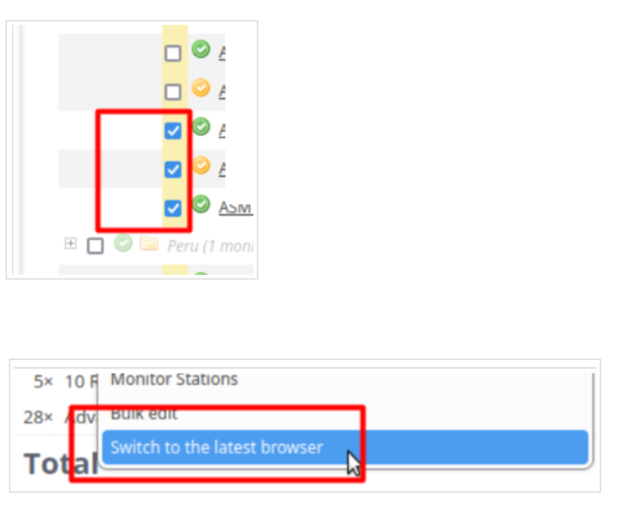 2) select monitors to switch to the latest browser and select the corresponding bulk action "switch to the latest browser"