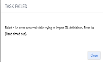 An error occurred while trying to import JIL definitions. Error is: [Read timed out].