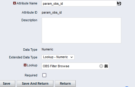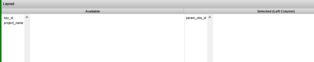 3. Configure the List Filter > Layout section inlcude : param_obs_id