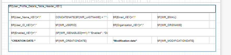 Edit the report in Jasper to collect data from second table: imruser6 which contains Creation date, modification date and last login date:
