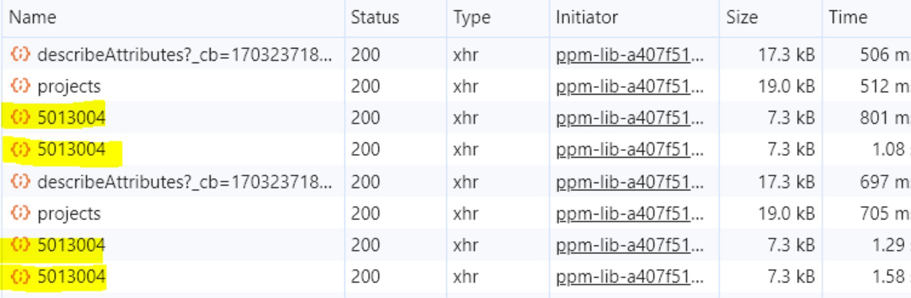 After clicking on the Properties icon in a project from the Project Tiles, there is a REST API call that seems identical that occurs 4 times.