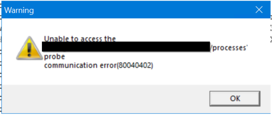 When I click the 'Test' button to verify the process, the probe crashes and I receive a communication error.