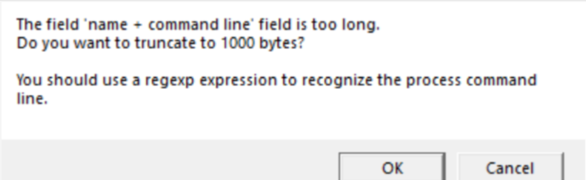 In the processes probe, I am trying to monitor a process that has a very long string of commandline parameters - over 1000 bytes.