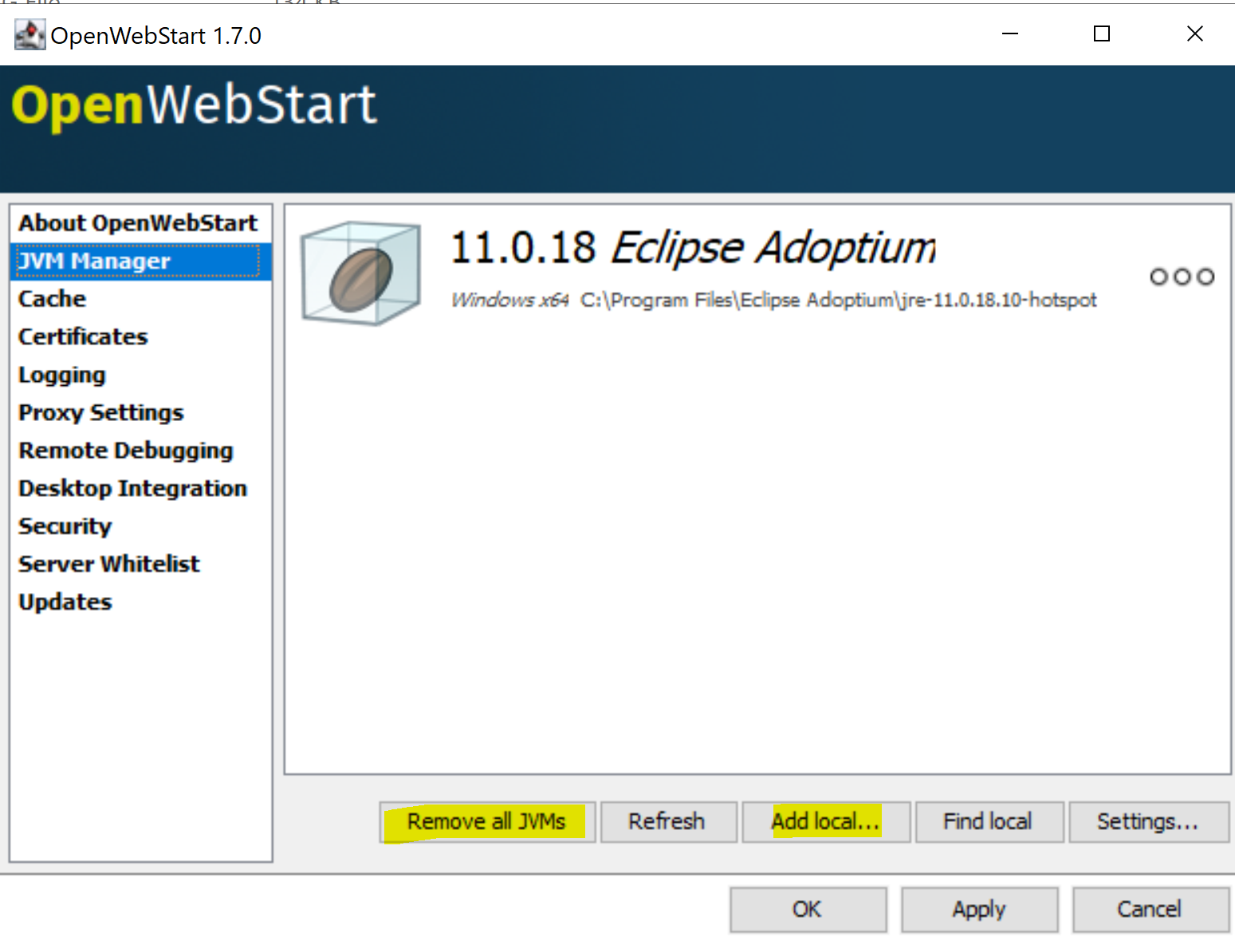 On the client pc, Open the OpenWebStart settings interface from Start - OpenWebStart - OpenWebStart settings