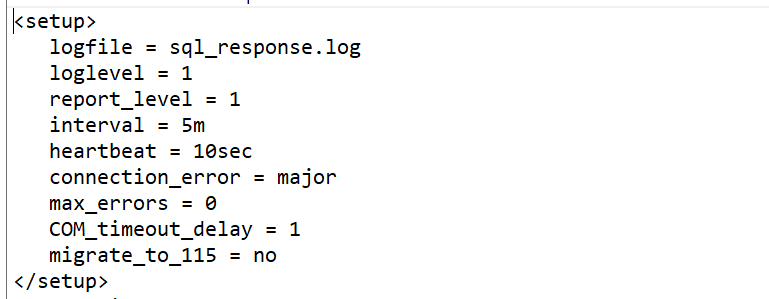 For example, the sql_response.cfg <setup> section normallly looks like:
