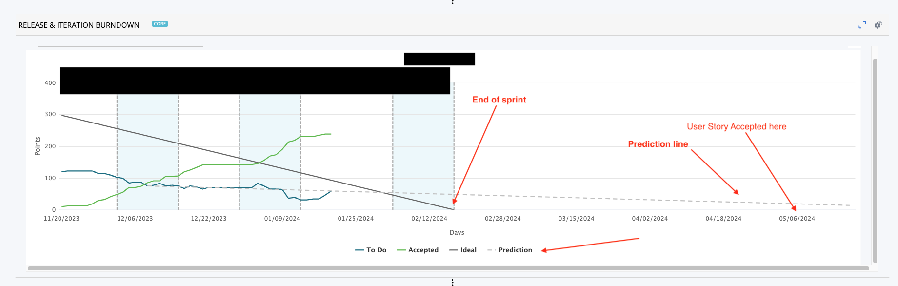 This was caused because some of the work had been completed after the end of the Iteration. The graph only displays data through the last day of the Iteration.