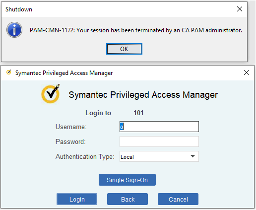 When that user gets disconnected, either by inactivity or by an admin logging them out, the PAM client will redirect them to the login prompt for the appliance they were connected to.