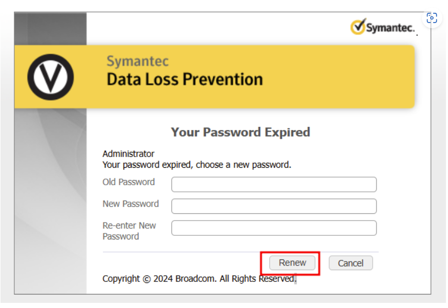DLP Enforce: Password change/renew for Administrator user fails from UI