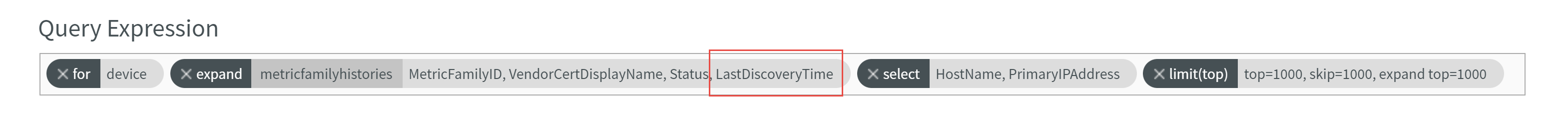 This will give you devices and associated metric families, including the 'Last DiscoveryTime'