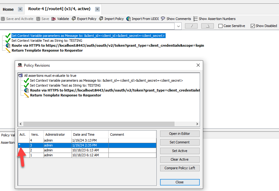 Note that the active API is the older version, to active any other version click on it, then client Set Active