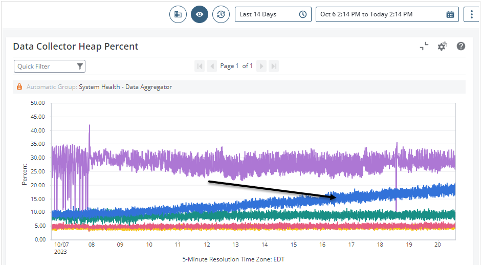 While monitoring the DC health views in NetOps portal, we see a gradual increase in the VNA linked DC heap percent.