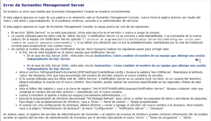 "Symantec Management Server ErrorAn error has occurred that prevents the Symantec Management Console displaying correctly."