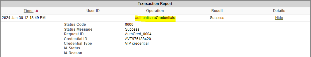 The VIP User Services authenticateCredentials API can be used to validate VIP credentials without requiring a VIP User ID element in the request. These transactions are captured and retained for 1 year in the VIP Manager end-user transaction reports. Credential validations using this method are analogous to the VIP Credential Services Validate and CheckOTP requests. Instructions here: VIP User Service API guide.