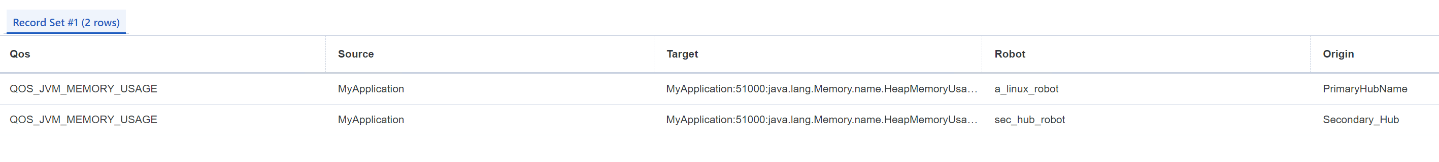 I have configured the jvm_monitor probe on multiple robots, under different origins, with identical profiles, monitoring a local JVM application that is running on the same server as the robot.