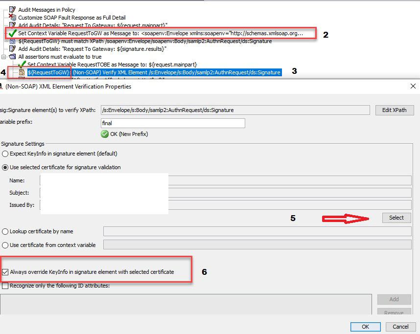 There's a requirement to validate the signature of an incoming SOAP AuthN request against an x509 certificate in the certificate store. The gateway is using the internal identity provider.