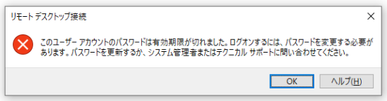RDP接続でADアカウントのパスワード有効期限が切れていることを確認