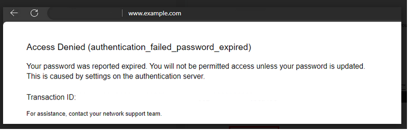 Edge SWGからのException画面は、「authentication_failed_password_expired」がレスポンスされるという想定ですが、